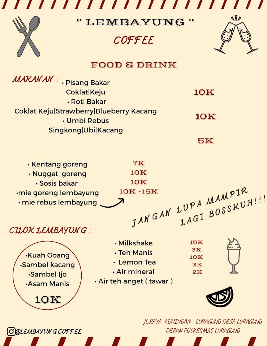 Welcome to Lembayung Coffee, a hidden gem nestled in the heart of Kuningan, Jawa Barat. Located at Jl. Raya Luragung - Kuningan, Luragunglandeuh, this charming cafe invites you to step into a world where the rich aromas of freshly brewed coffee wrap around you like a warm embrace. Whether you are a local or just passing through, Lembayung Coffee promises an authentic experience tailored for coffee lovers, casual meet-ups, or those just looking to escape the bustle of life.